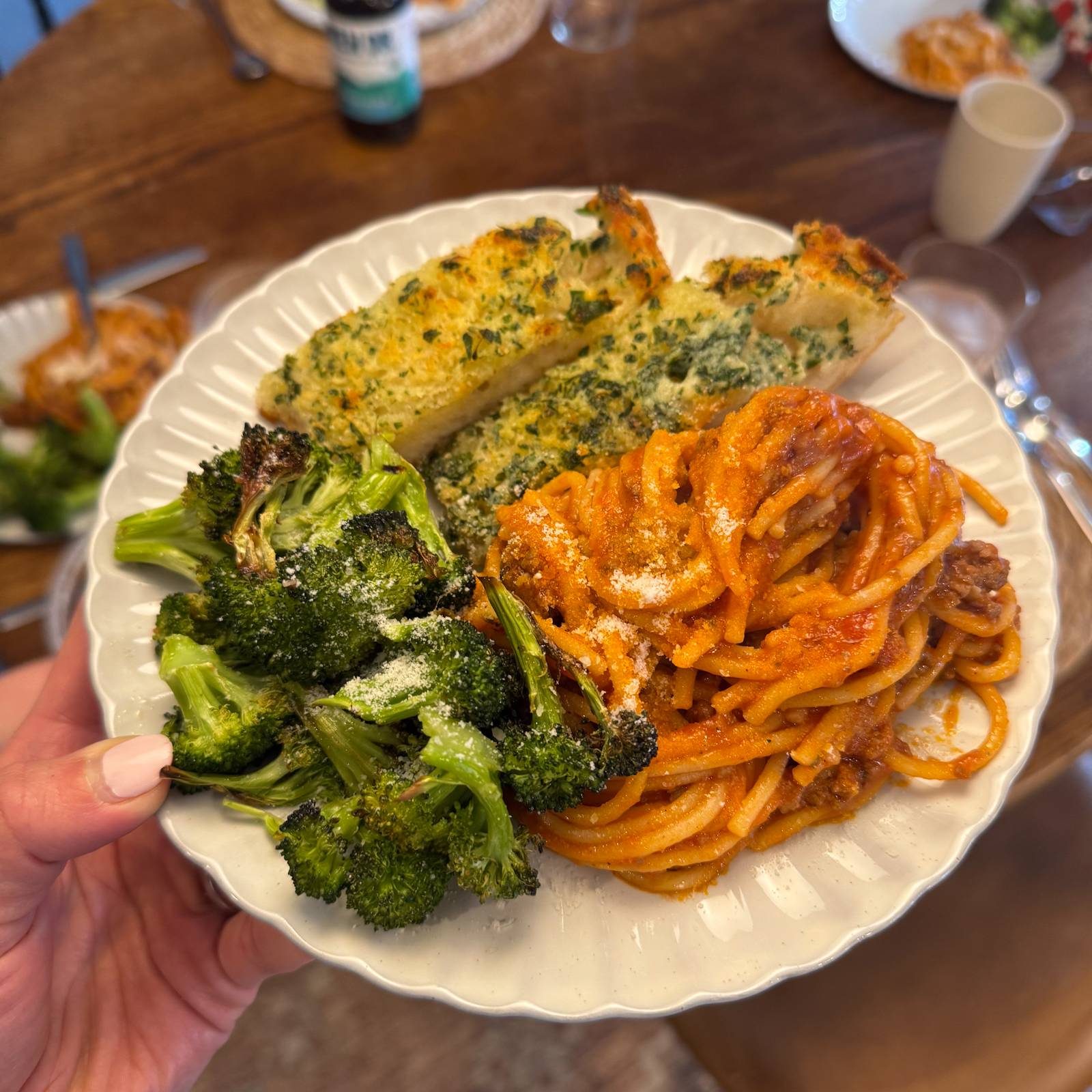 We started making it this way “to help her” but quickly realized… Instant Pot spaghetti is actually kinda special. It’s silky, flavorful, and extra clingy. Makes for an ideal combo with house favorite garlic bread and air fryer broccoli.